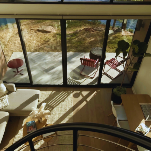 Large gable windows invite natural light and frame panoramic outdoor views, enhancing the living atmosphere.